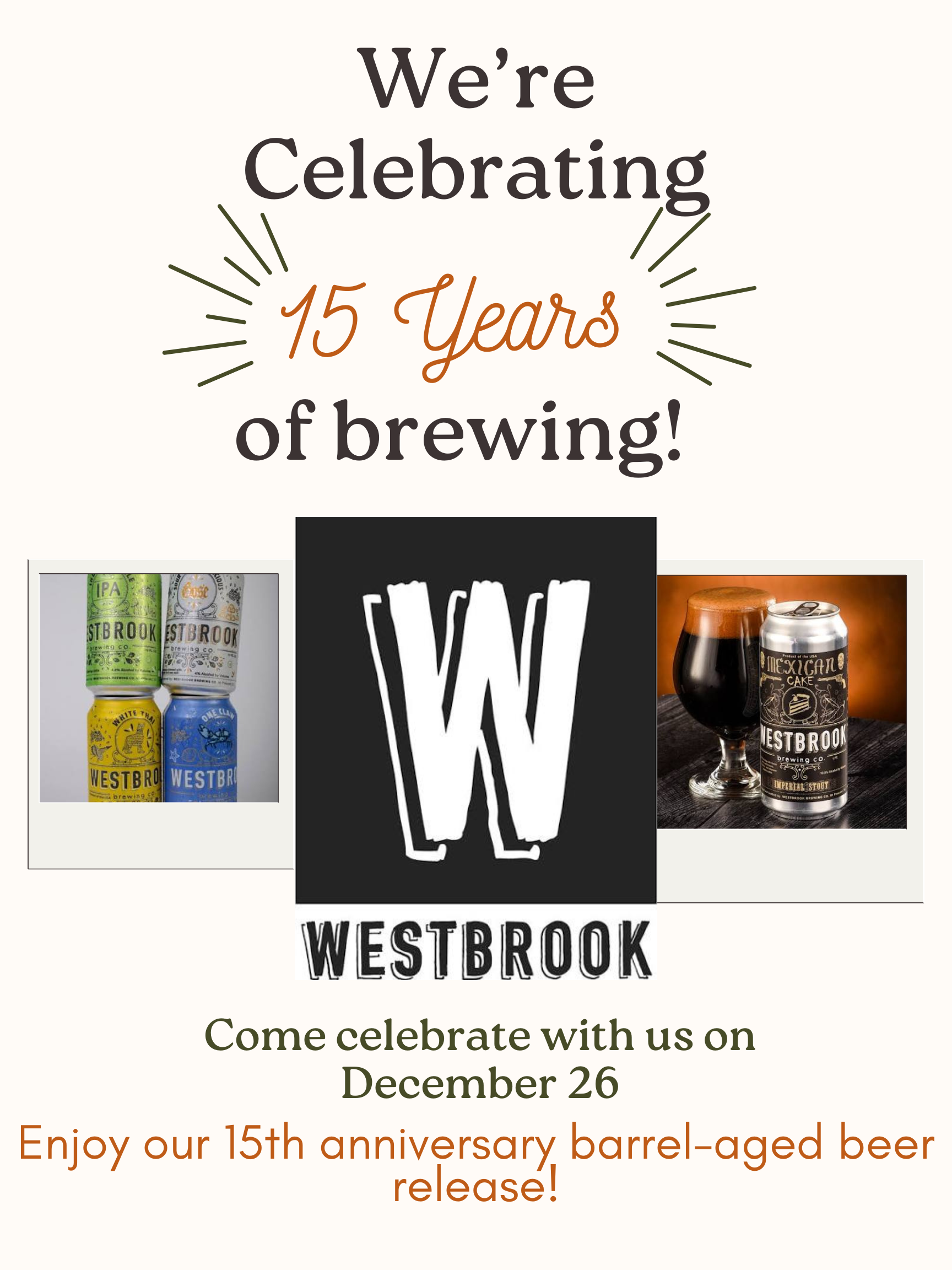 Celebrate 15 years of brewing with us with specials in the taproom all weekend starting December 26 and the release of our 15th anniversary bottle.